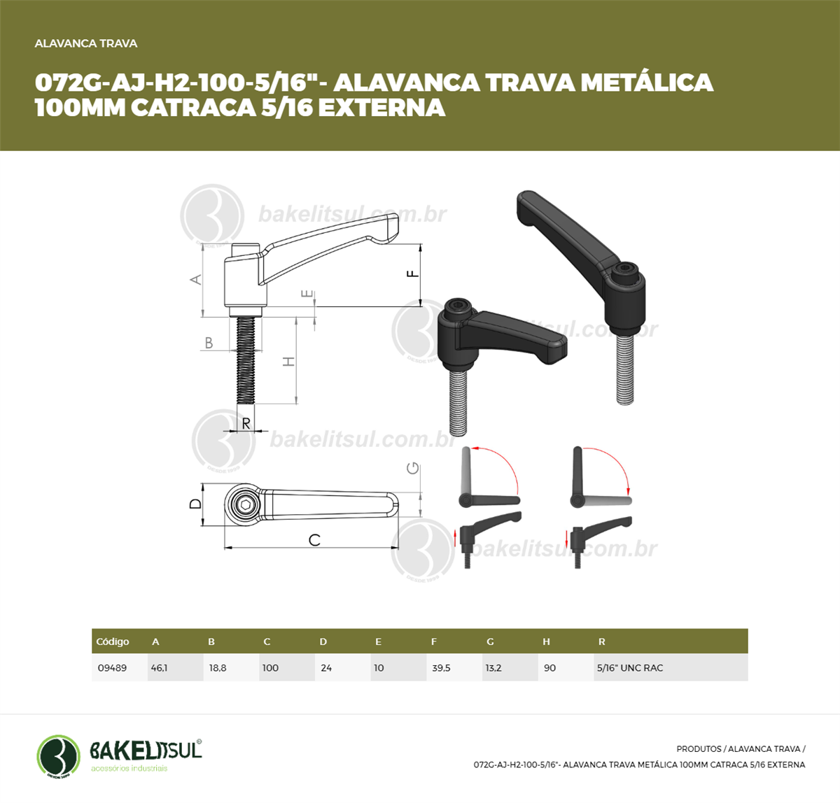 AJUSTADOR ALAVANCA TRAVA 100MM METÁLICA ROSCA EXTERNA-5/16"