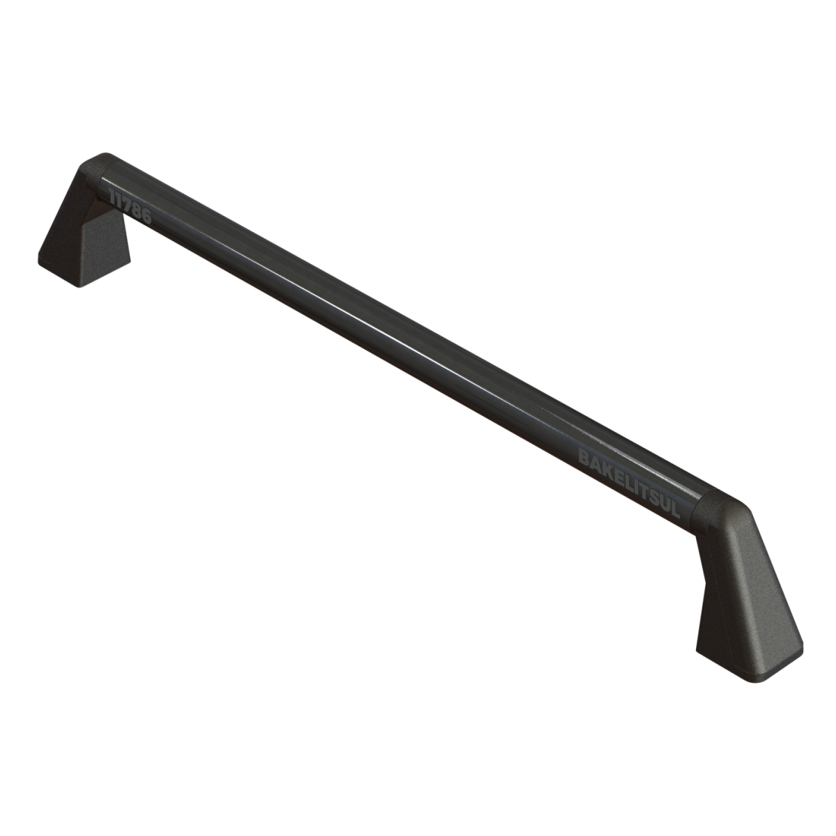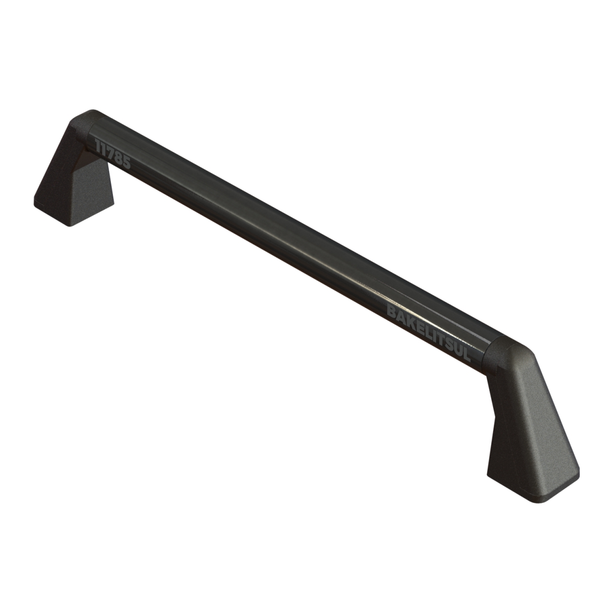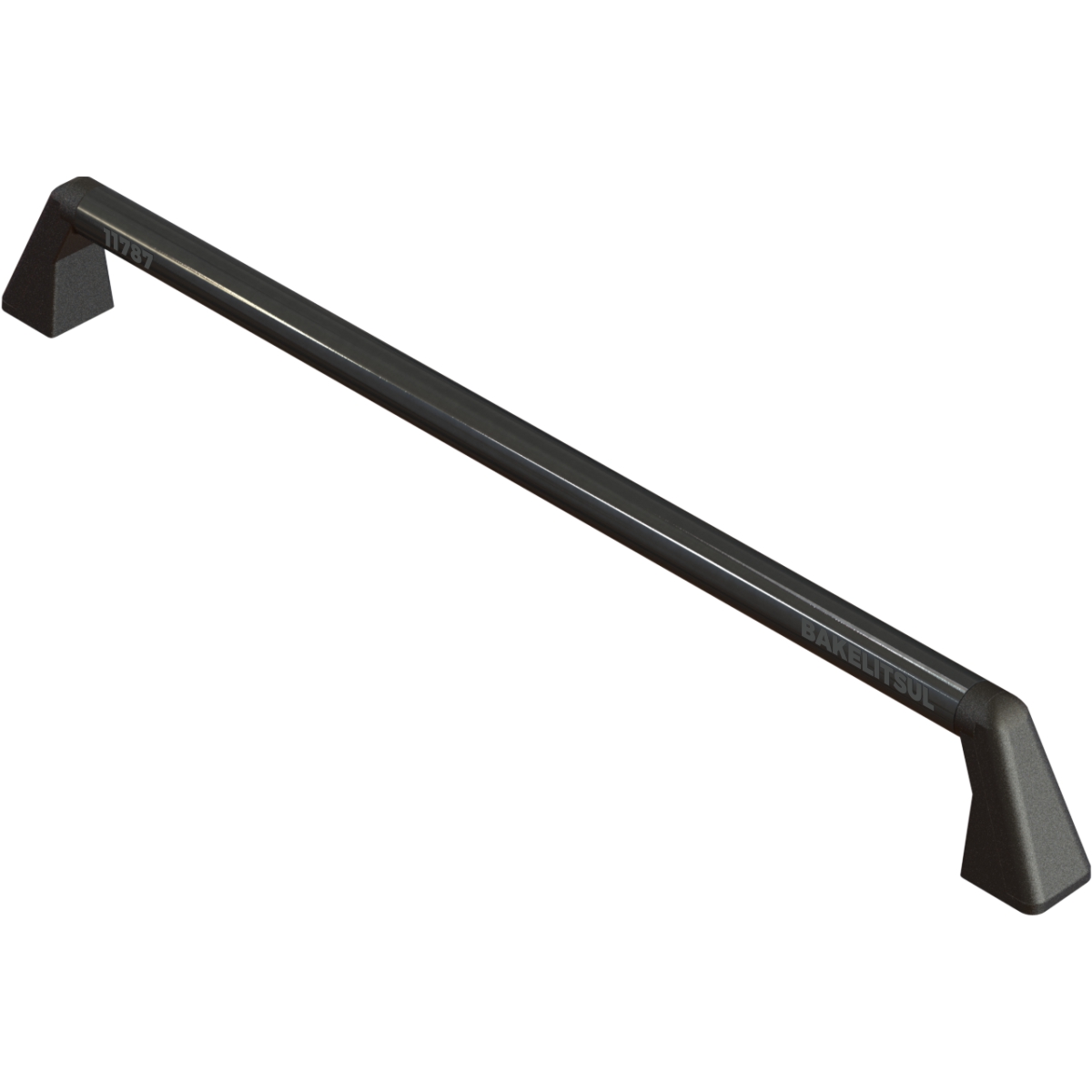 Suportes laterais fabricados em Tecnopolímero(*) preto texturizado reforçado com 30% de fibra de vidro. Tubo central em aço carbono com acabamento superficial pintado em epóxi preto liso.