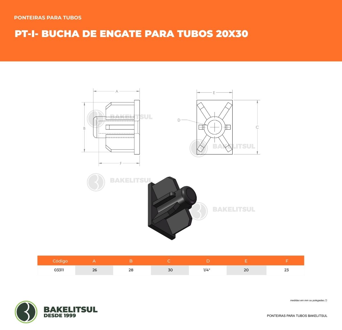 Bucha de engate utilizada em tubos 20X30, com capacidade de receber