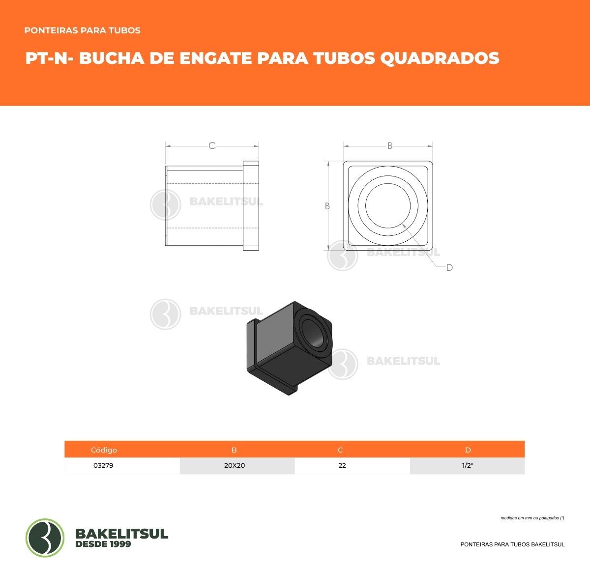 Bucha de engate utilizada em tubos quadrados (medida B), com