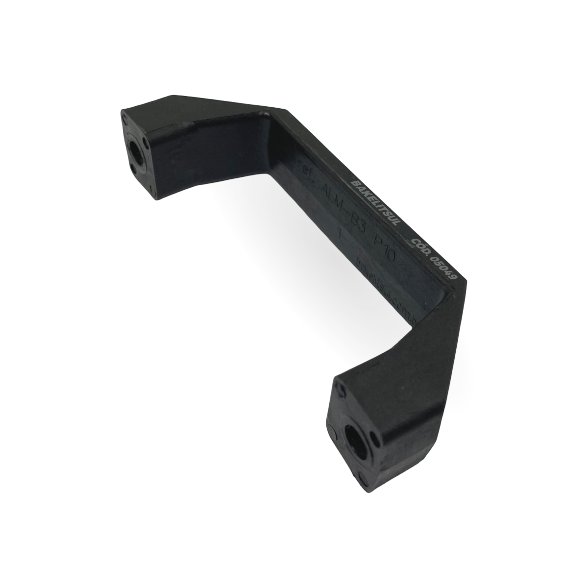 Alça injetada em polímero plástico tecnopolímero(*) reforçado com 30% de fibra de vidro, acabamento superficial texturizado em preto.