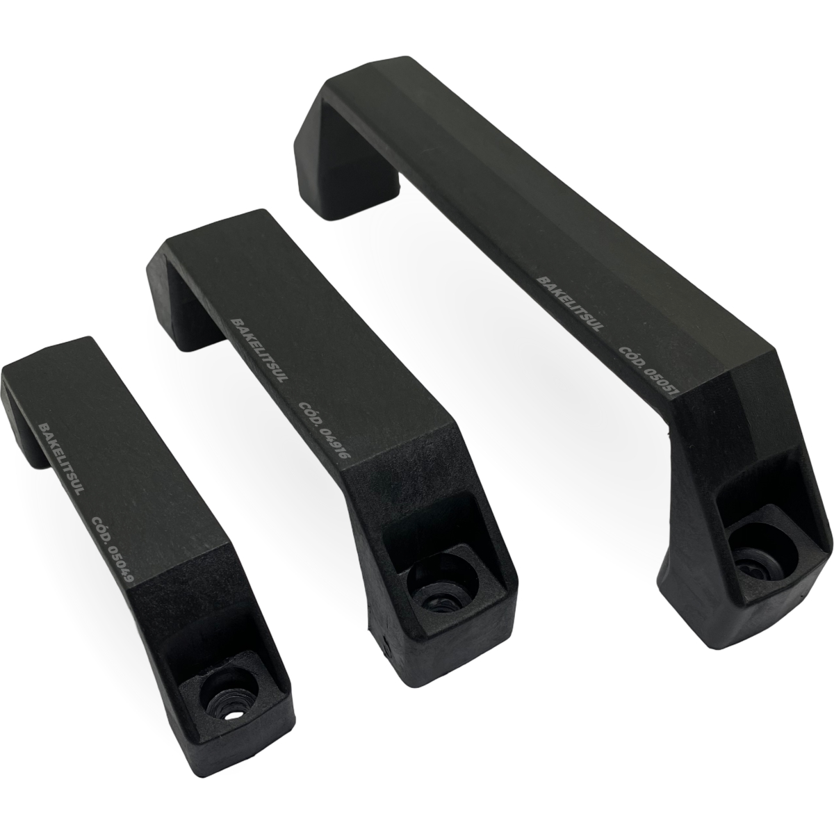 Alças BakelitSul, usadas na manipulação de portas, janelas, escotilhas, tampas, alçapões, sendo úteis para movimento tipo puxe/empurre.