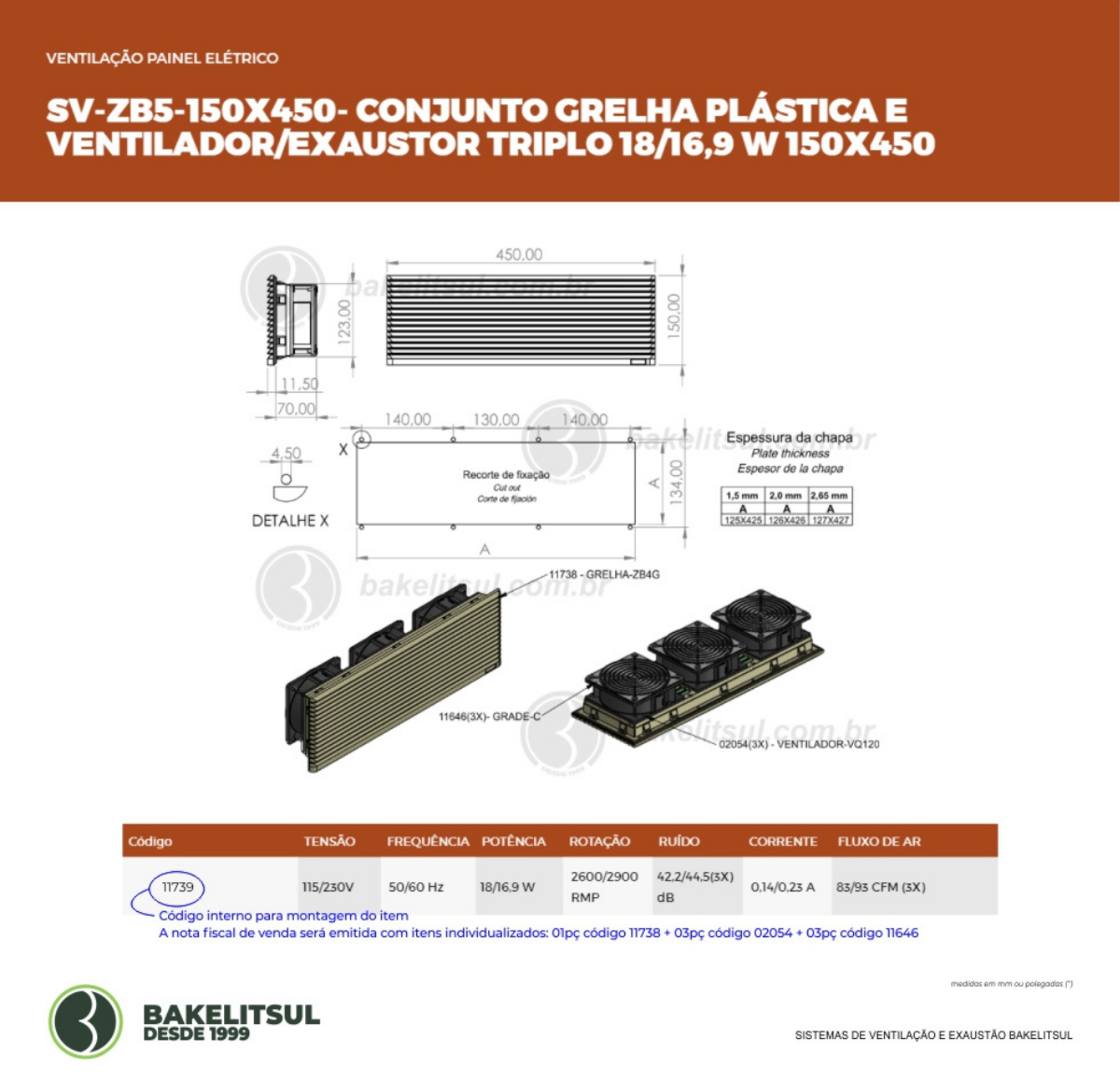 SV-SISTEMA DE VENTILAÇÃO-PVAL-ZB5V450-SR-150x450-PSR-115/230V-18/16W
