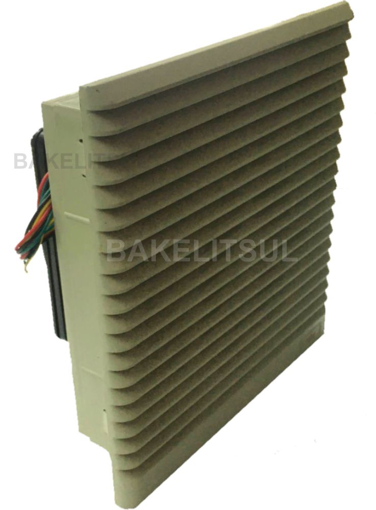 tecnopolímero(**), acabamento na cor preta. grelha injetada em copolímero ABS UL94-VO(*). Filtro de ar em manta sintética com estrutura progressiva em fibras de poliéster ligados termicamente atendendo a EU 2 Din24.185 / G2 EN779 / G2 NBR6401 e com retenção de pó de 600 gr/m². Cor Padrão = RAL 7032
