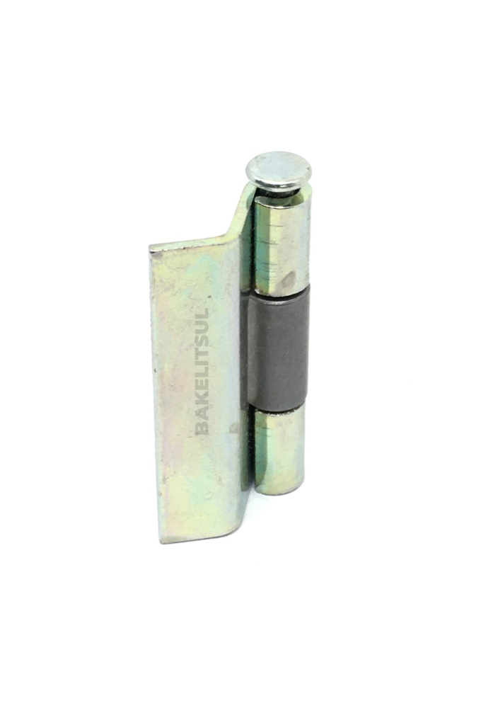 Dobradiça fabricada em aço baixo carbono(*), acabamento superficial zincado trivalente.