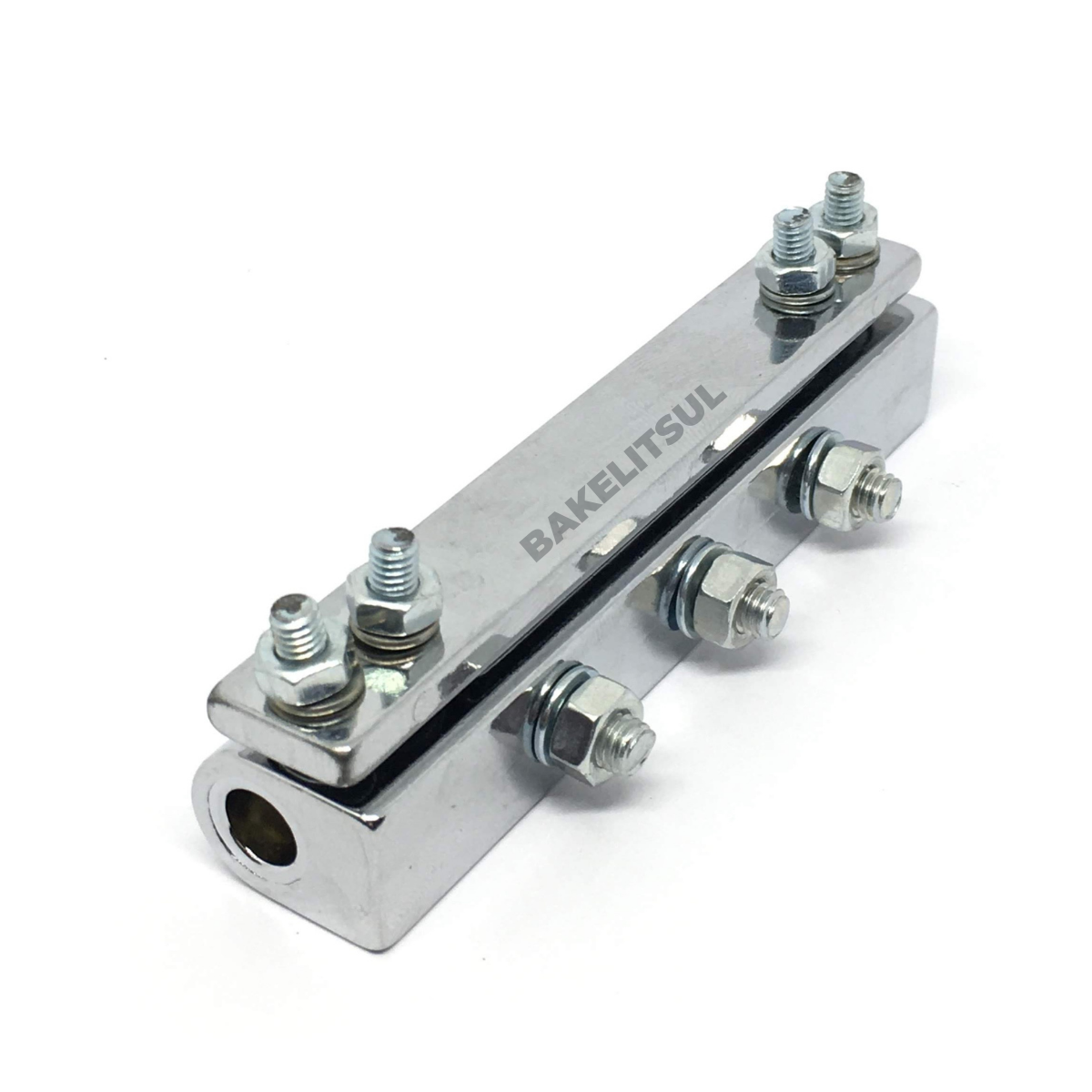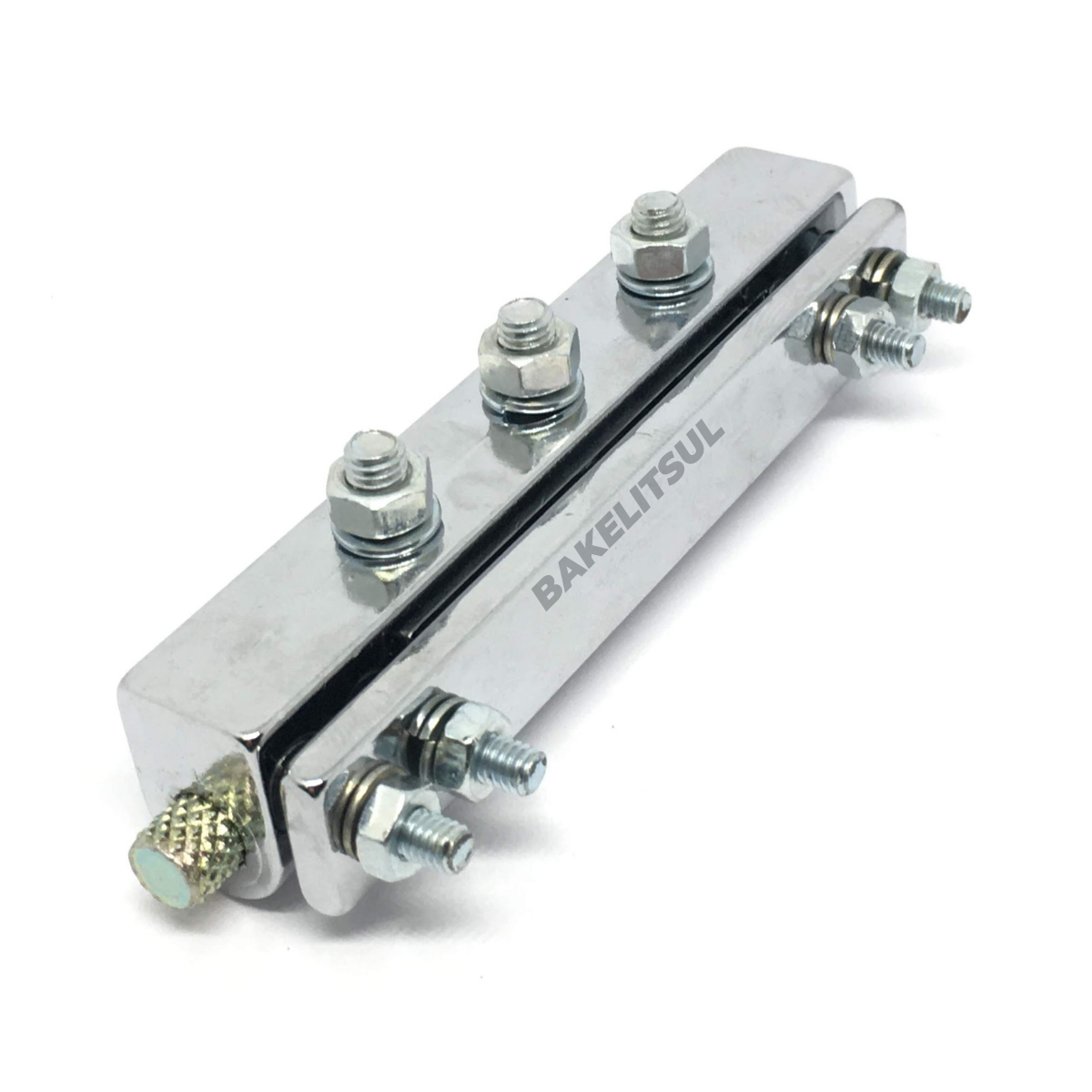 Fixação através de parafusos, porcas e arruela (fornecidos no conjunto).