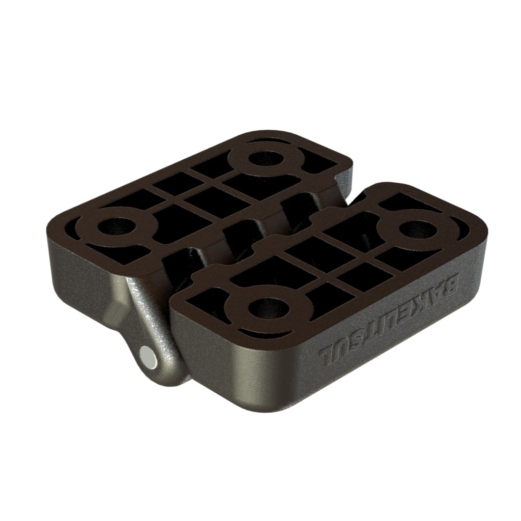 Injetado em tecnopolimer(*) reforçado com 30% de fibra de vidro acabamento texturizado preto, pino central em aço inoxidável AISI304.