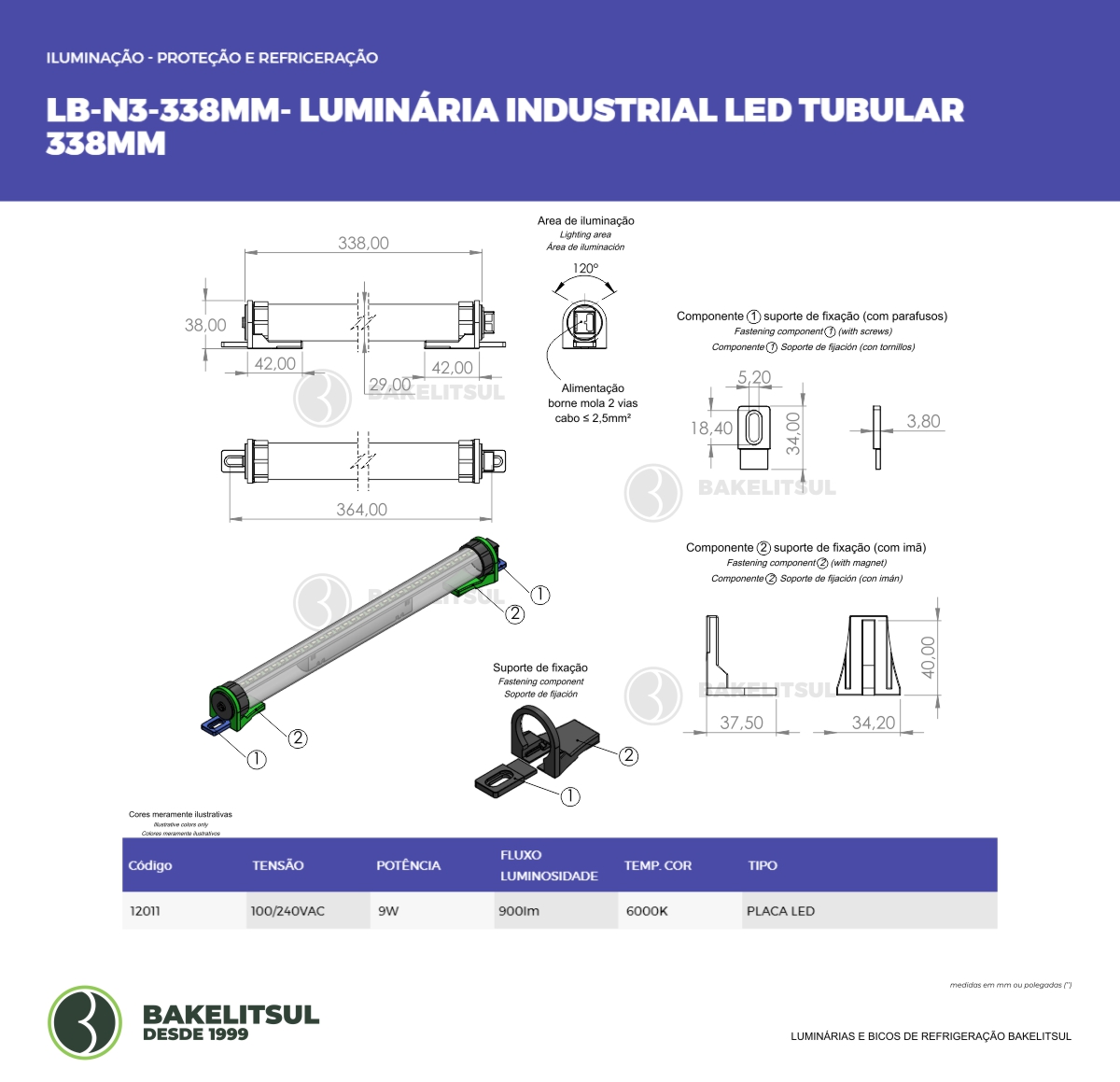 LUMINÁRIA INDUSTRIAL LED TUBULAR 338MM LB-N3