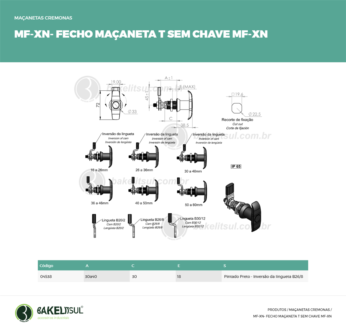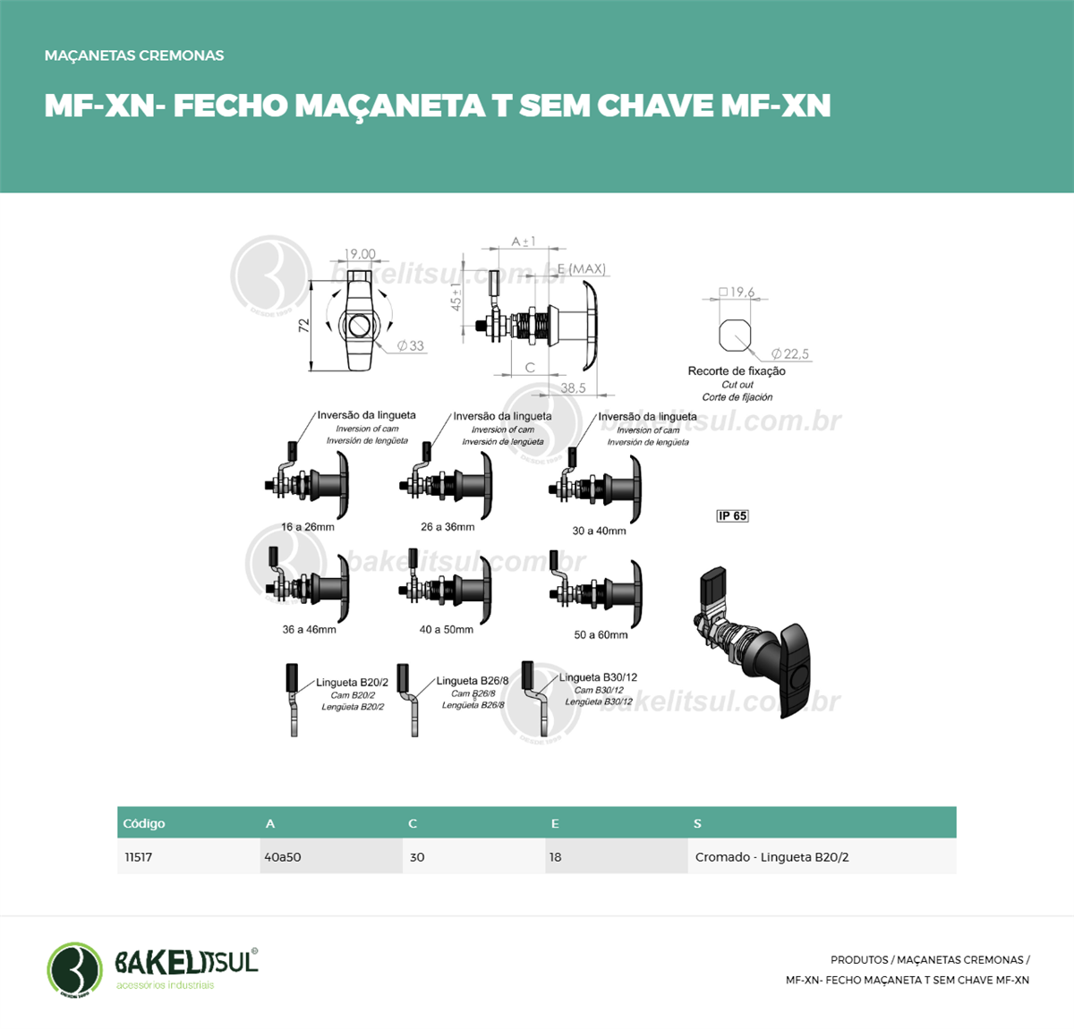 MAÇANETA DE FECHAMENTO T COM LINGUETA MF-XN