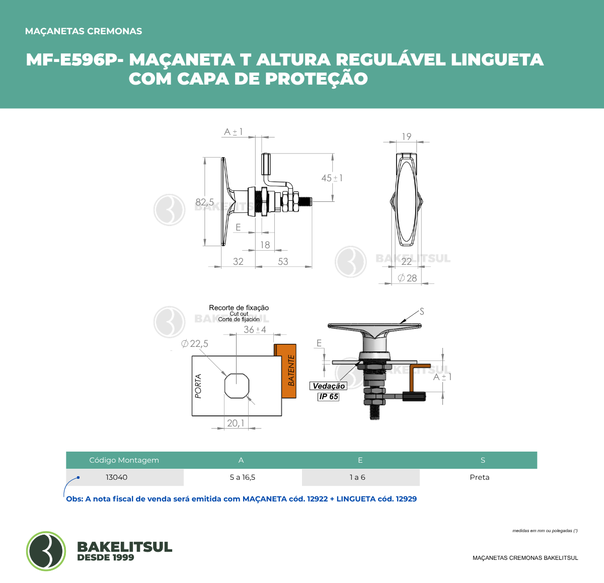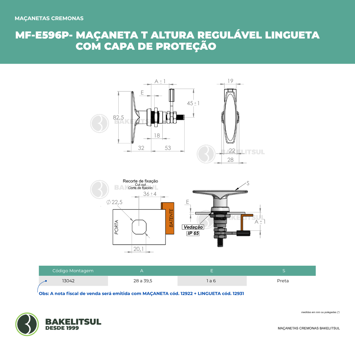 Cota “E” do desenho técnico refere-se a espessura máxima da estrutura para a montagem da maçaneta.