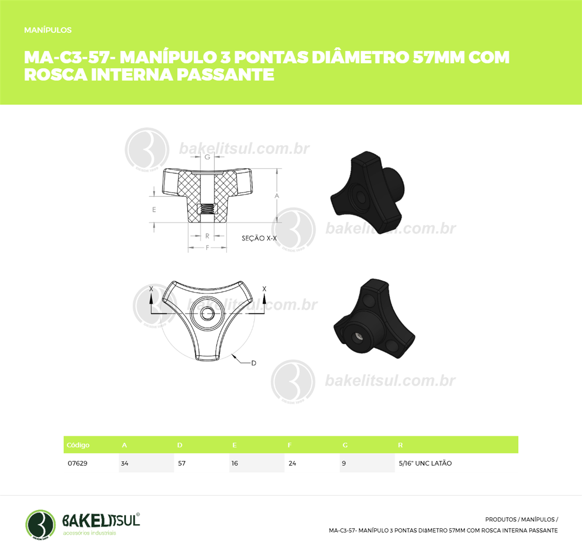 Manípulos BakelitSul, são peças utilizadas para apertos, desapertos e regulagens em geral. Sua ergonomia facilita o uso sem a necessidade de ferramentas