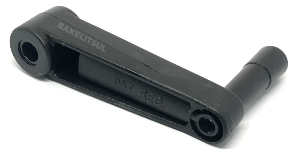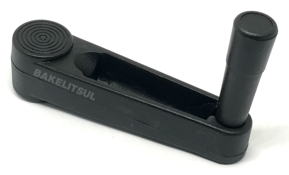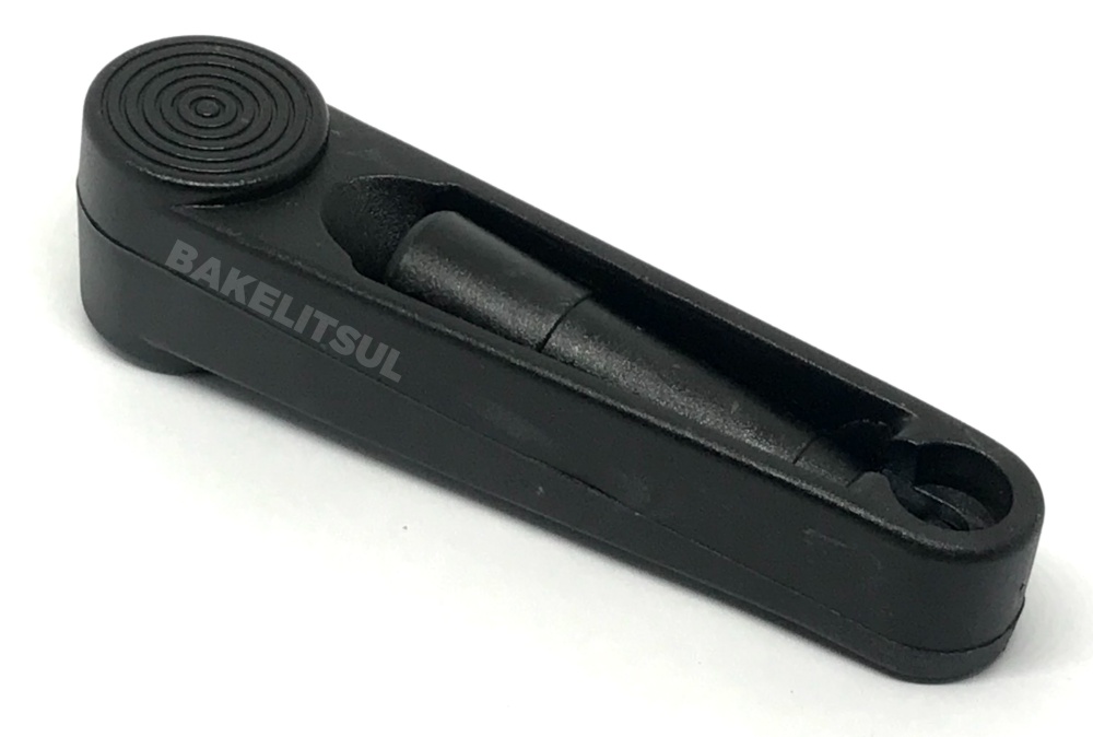 Manivela injetada em polímero plástico Tecnopolímer(*) reforçado com 30% de fibra de vidro, acabamento superficial texturizado preto.