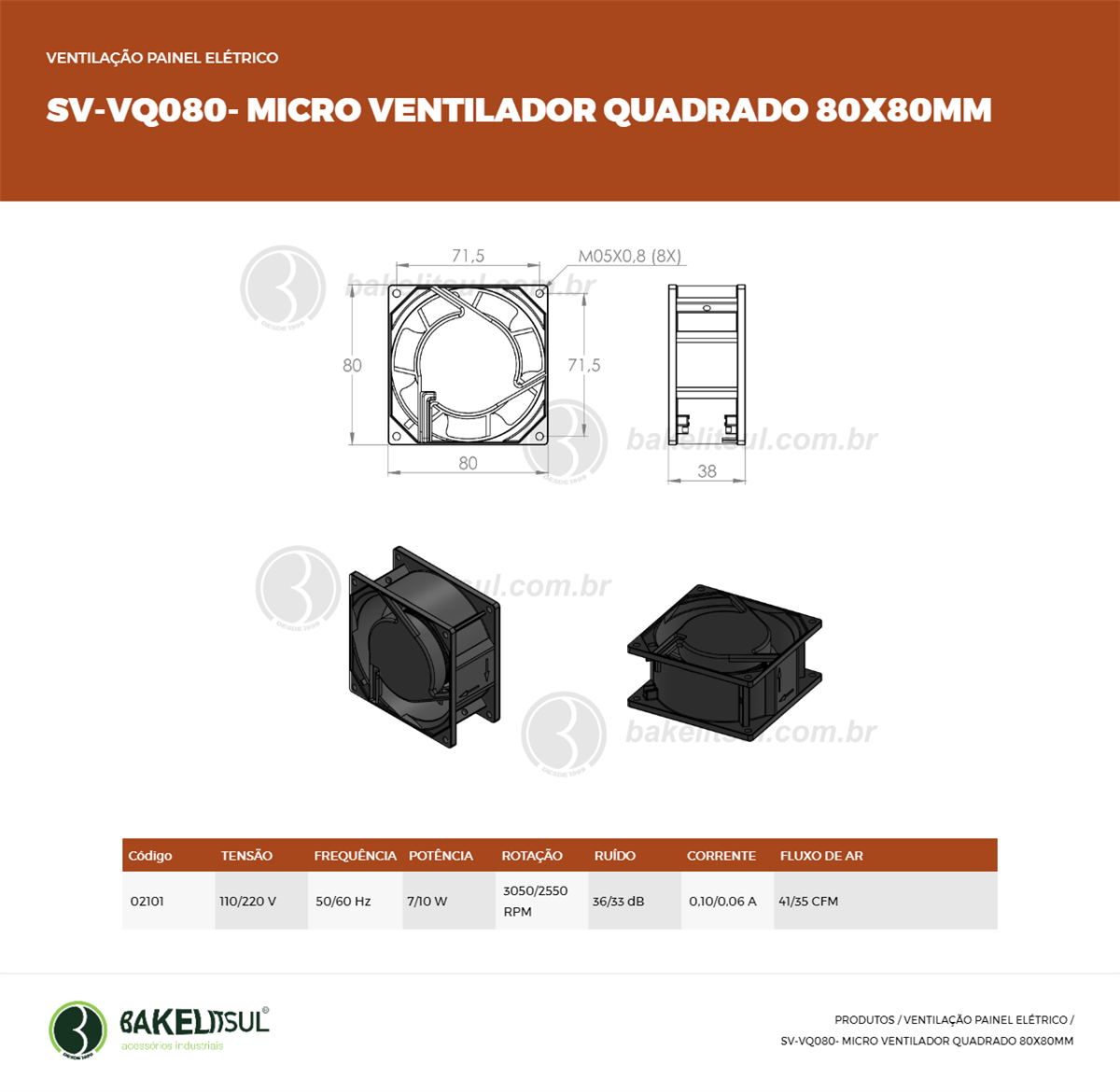 Ventilador fabricado em alumínio(*), conjunto da hélice injetado em