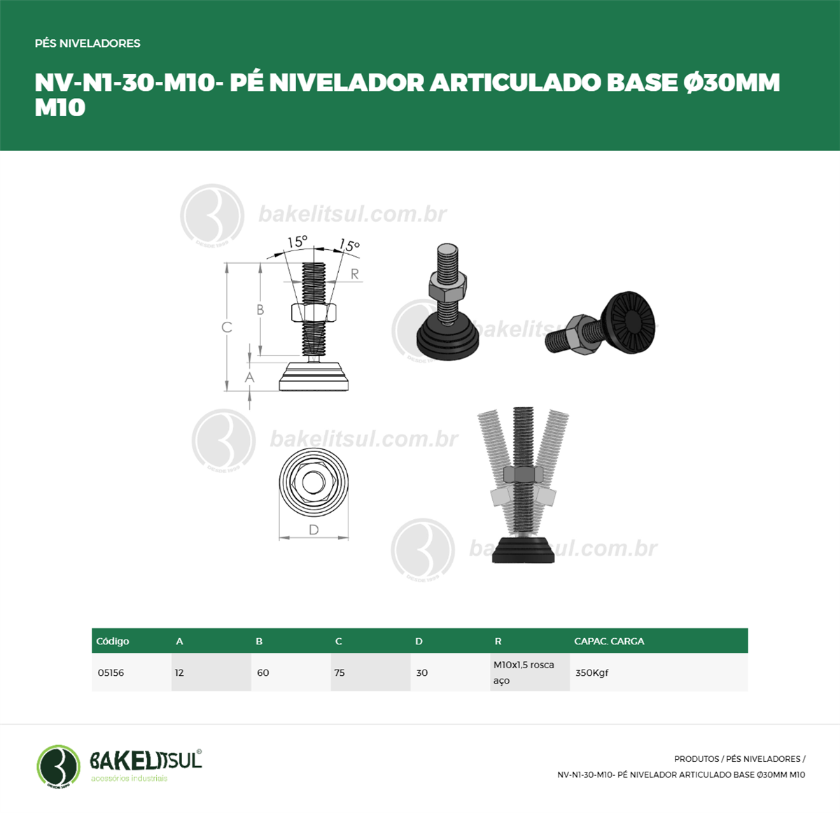 PÉ NIVELADOR ARTICULADO N1 BASE 30 M10