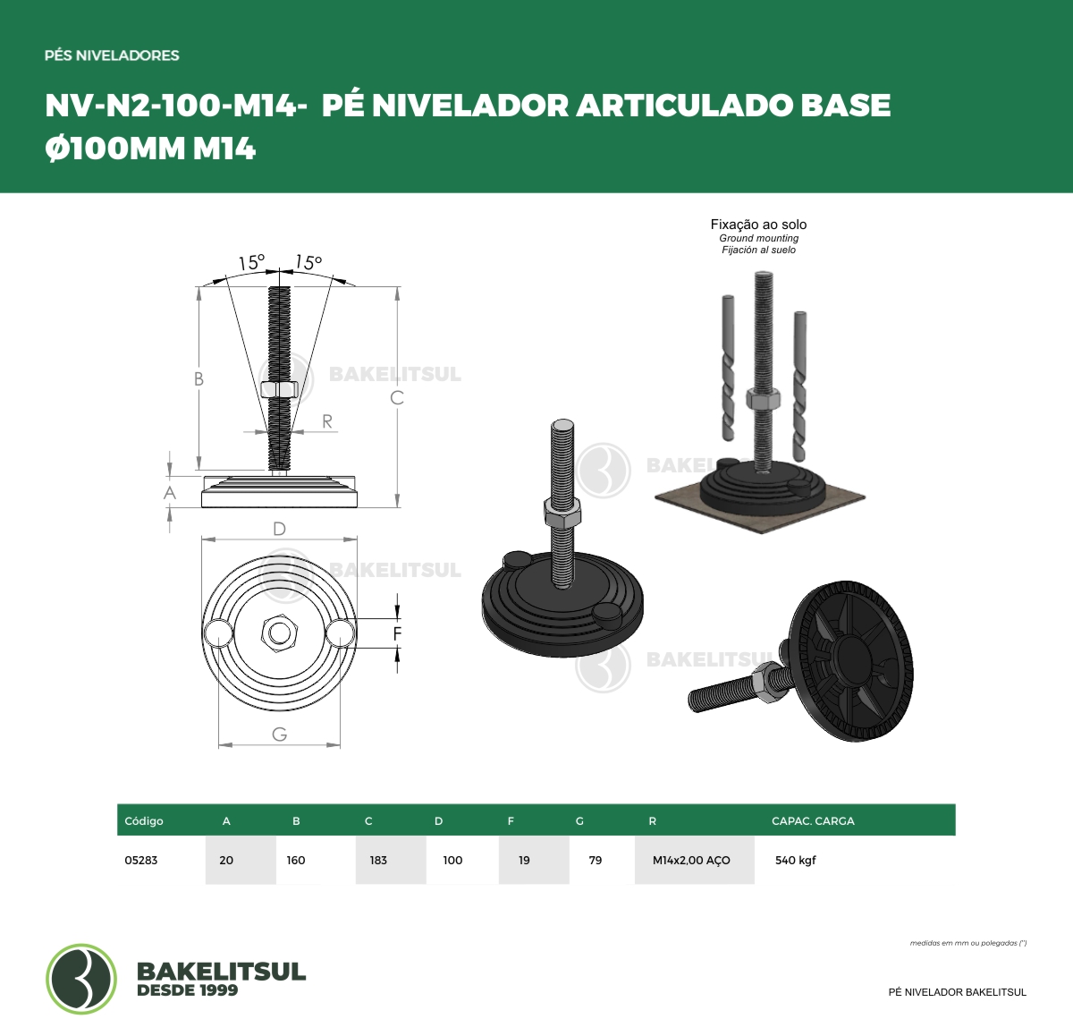 PÉ NIVELADOR ARTICULADO N2 BASE 100 M14