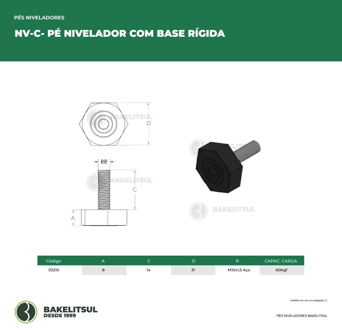 PÉ NIVELADOR ROSCA EXTERNA M10X14mm BASE 31 SEXTAVADA RÍGIDA
