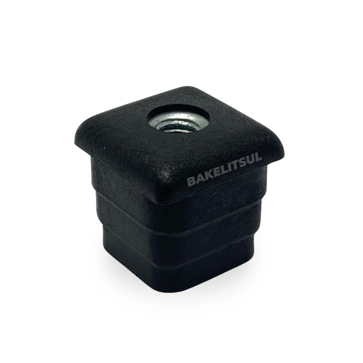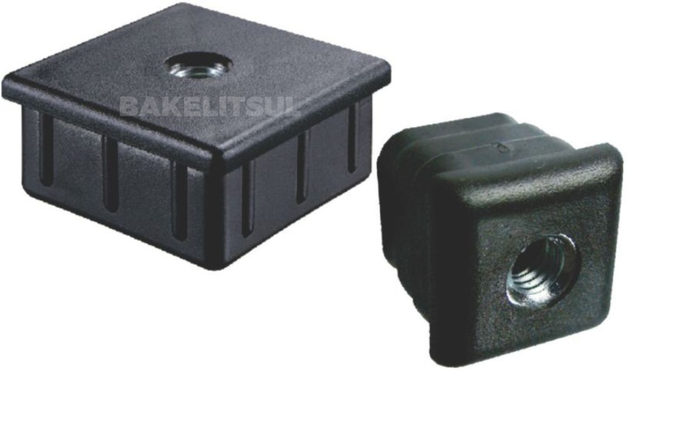 Utilizado para acabamento em pontas de tubos quadrados, sendo que sua principal característica é a rosca interna metálica que permite a fixação de niveladores, rodízios e outras hastes roscadas.