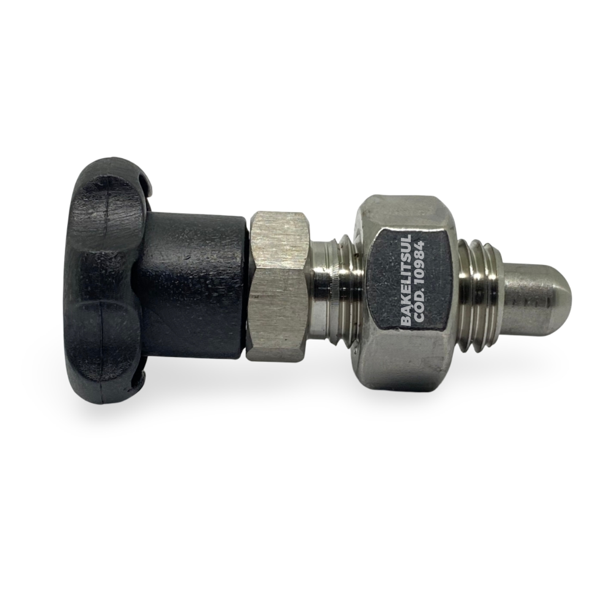 Botão posicionador indexador, com mola para avanço e recuo automático do pino interno. Utilizado para localizar, fechar, travar ou centralizar partes de máquinas e equipamentos em geral, mobília médico/hospitalar, equipamentos gastronômicos, aparelhos musicais, aparelhos de ginástica, etc.