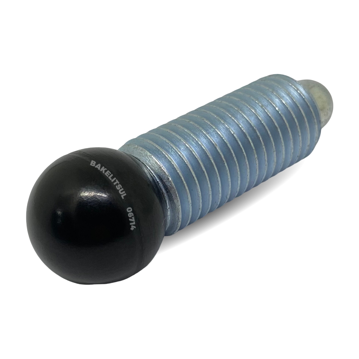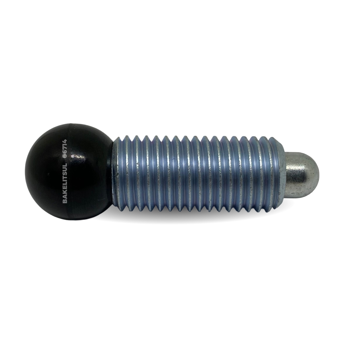 Esfera de acionamento fabricado em Baquelite(*) com acabamento superficial liso polido em preto. Componentes metálicos em aço baixo carbono (RAC) ou aço inoxidável (RIN) AISI304.