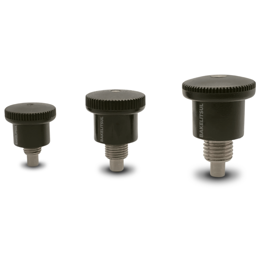 Posicionadores indexadores BakelitSul possuem mola interna para avanço e recuo automático do pino central.