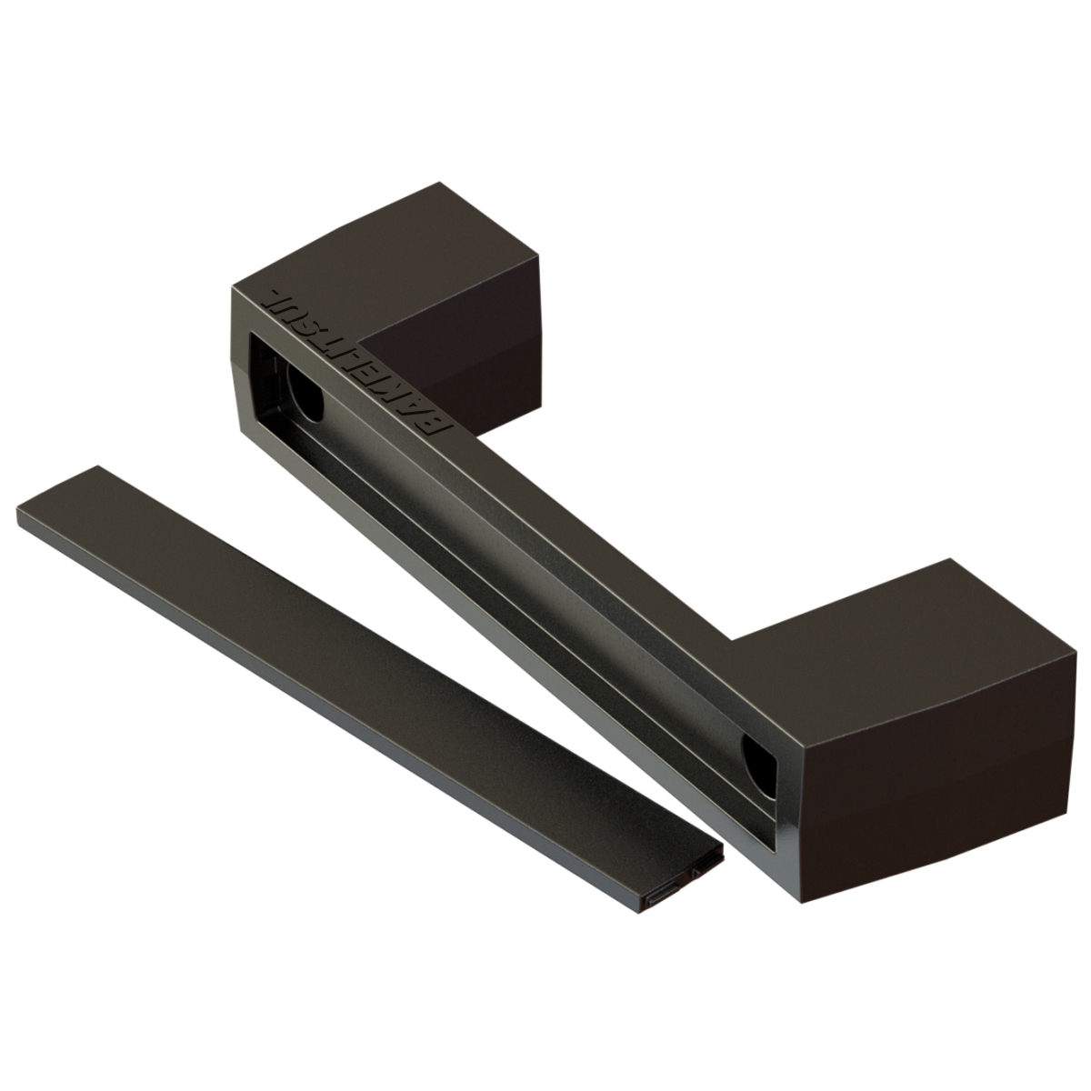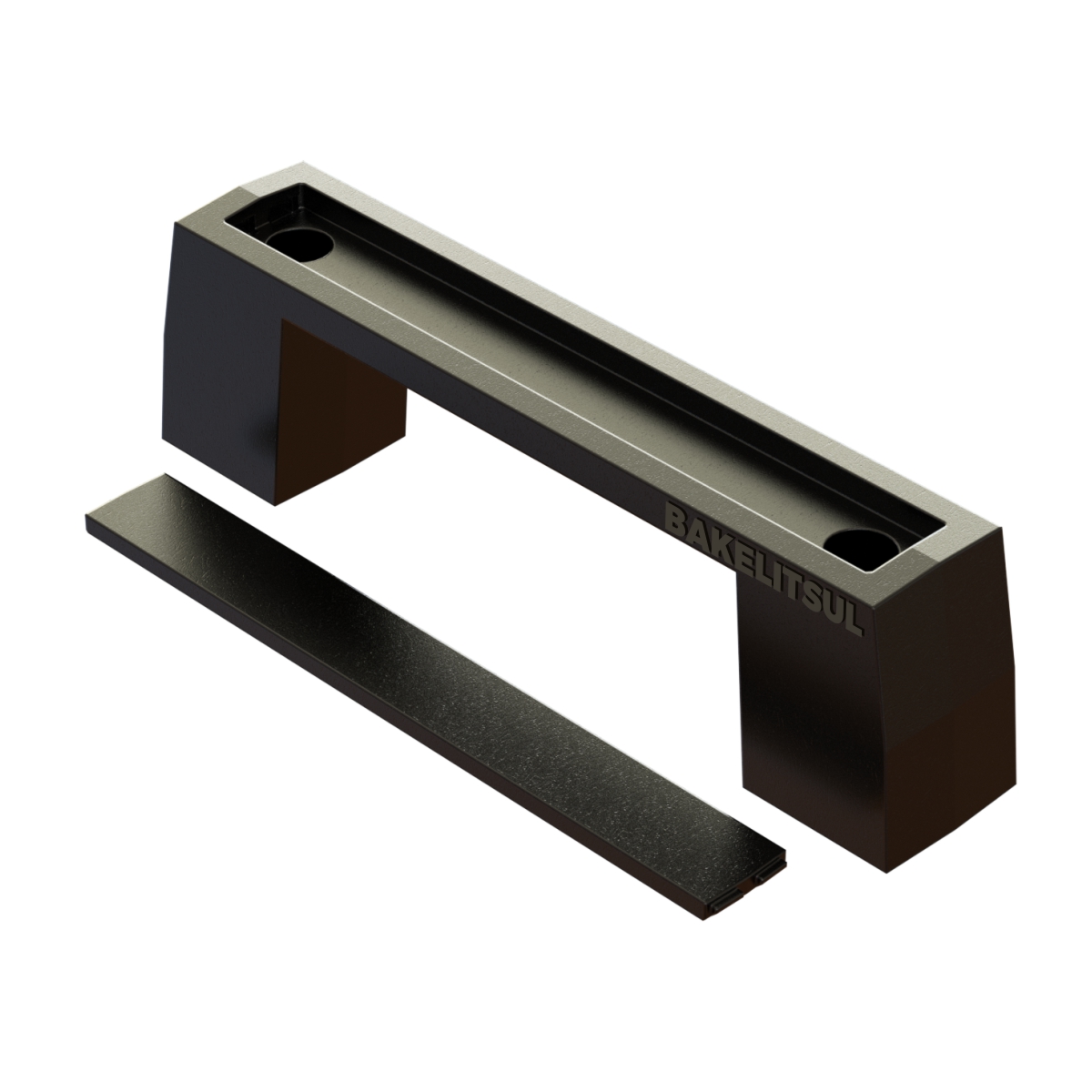 Alça injetada em polímero ABS(*) com acabamento texturizado na cor preta.