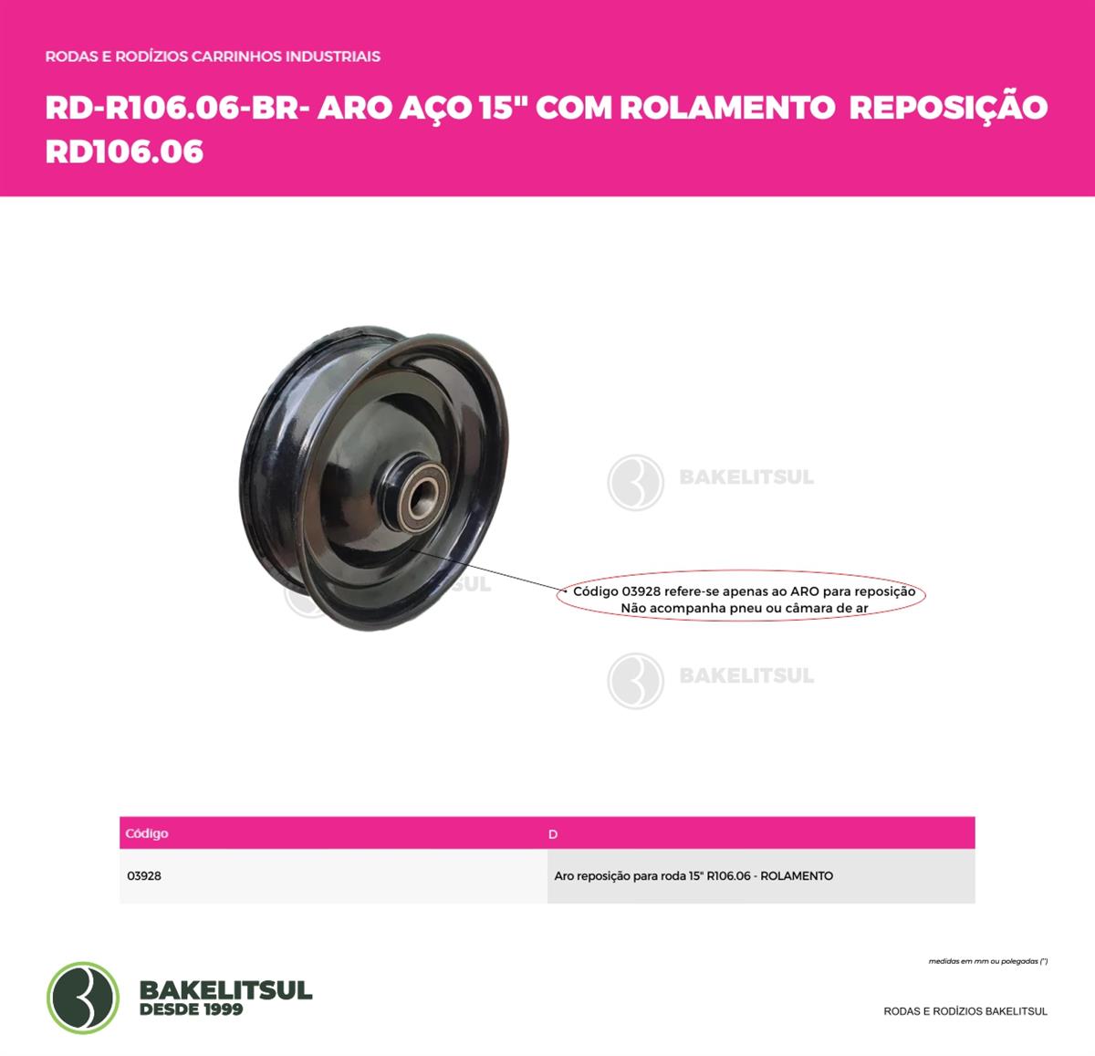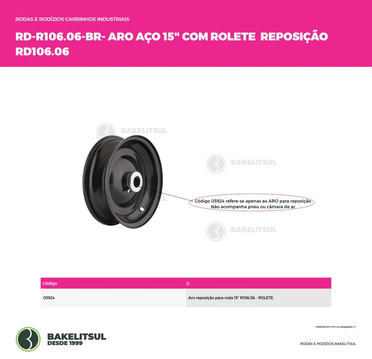 RODA BORRACHA 15” COM C MARA ARO METÁLICO R106.06