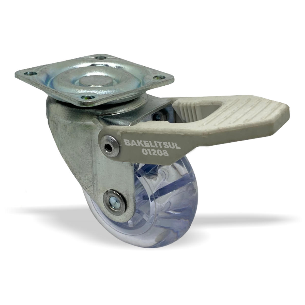 RODÍZIO GEL TRANSPARENTE GIRATÓRIO COM PLACA TRAVA