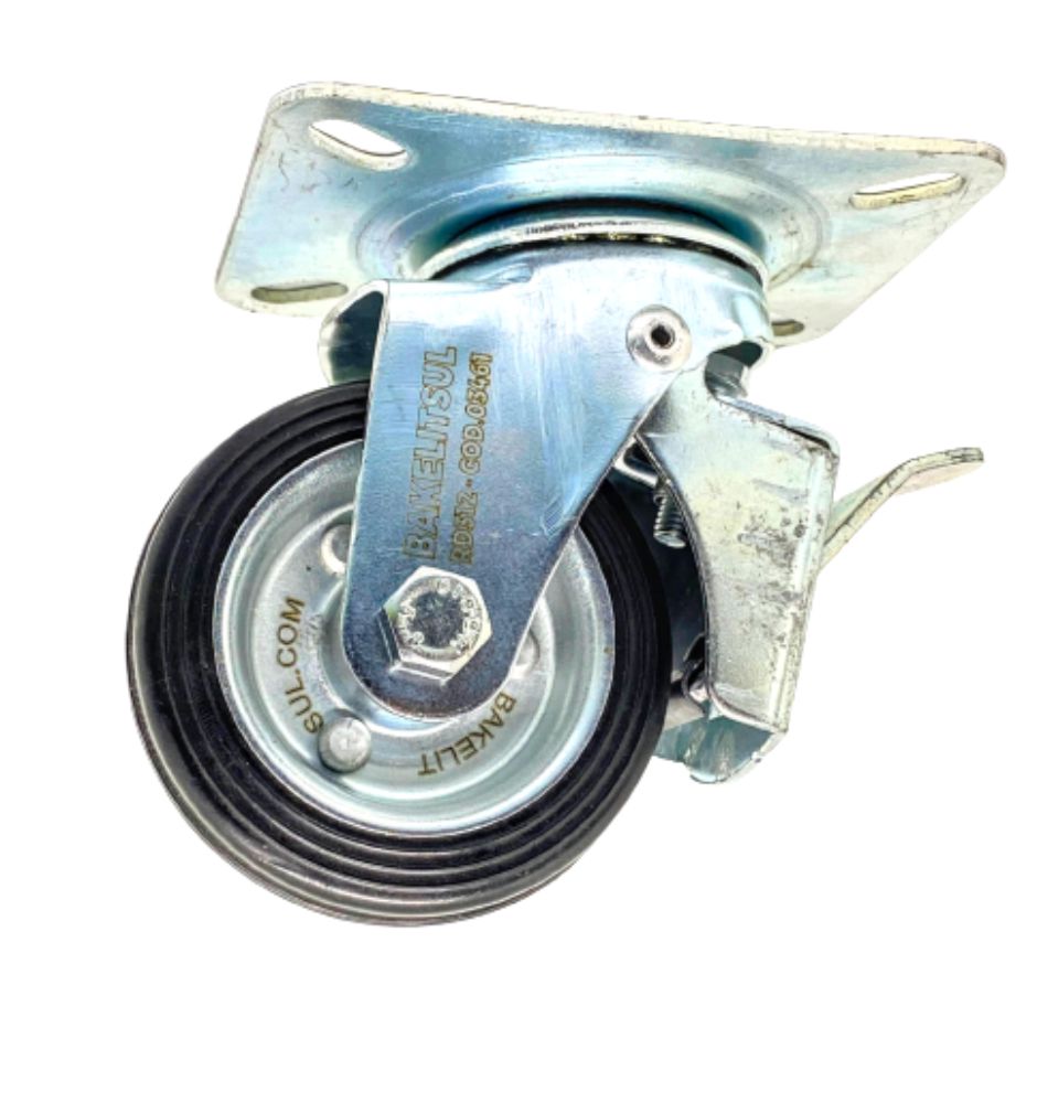 RODÍZIO GIRATÓRIO PLACA LINHA LEVE TRAVA 80 A 100KGF BR-GPLLT