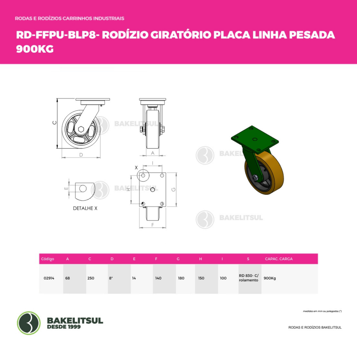 RODÍZIO GIRATÓRIO PLACA LINHA PESADA 900 KGF FFPU-BLP8